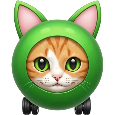 Cute green ball with cat ears with wheels emoji | AI Emoji Generator