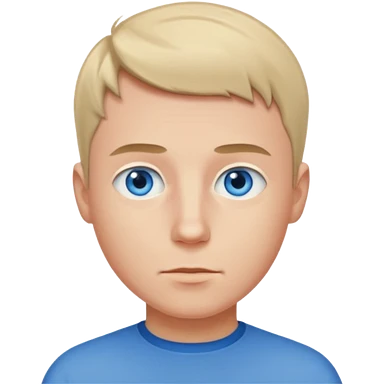 dark brown eyes, very very curly blonde short hair guy, serious face emoji