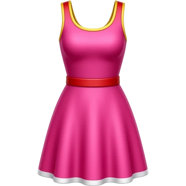 Cute emoji icon of a bright pink dress, sleeveless with red straps bordered in yellow, white trim along the bottom edge, smooth fabric texture, front view, clean white background, isolated clothing, simple flat emoji style, centered --ar 1:1 emoji
