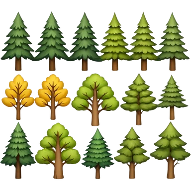 Cute, full-length tree emoji birch, pine, oak, maple, spruce, poplar emoji