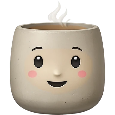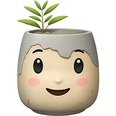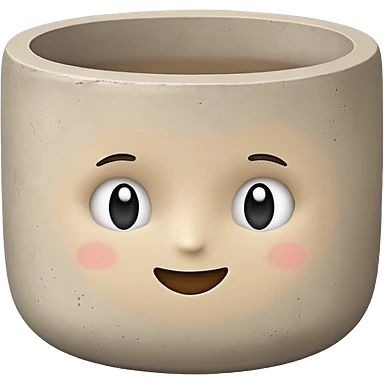 Cute emoji-style illustration of a smooth concrete pot with soft texture, neutral grey-beige color, minimal design, rounded edges, clean aesthetic background emoji