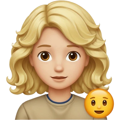 Woman cute, hair in messy bun, sky eyes, pink lips, slight smile, curvy emoji