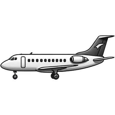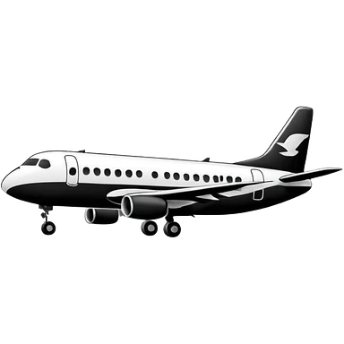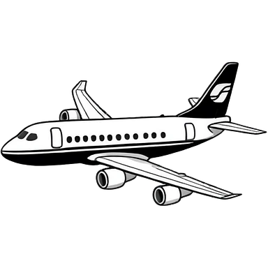 aeroplane hand-drawn side view icon, black background white outline emoji