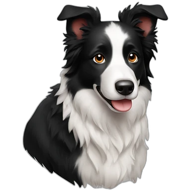 Cinematic Cute Border Collie Portrait Emoji, Head tilted playfully and inquisitively, with a sleek black and white coat and bright, sparkling blue eyes filled with curiosity, Simplified yet irresistibly adorable features, highly detailed, glowing with a warm, friendly glow, high shine, energetic and affectionate, stylized with a touch of whimsy, bright and endearing, soft glowing outline, capturing the essence of a mischievous yet loving pup, so playful it feels like it could bound out of the screen and into your arms! emoji