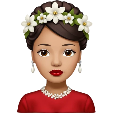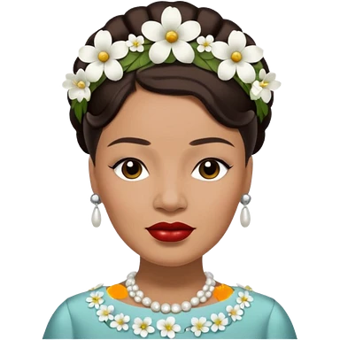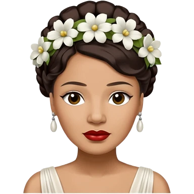 Billie Holiday with dark brown hair with white flowers headdress emoji