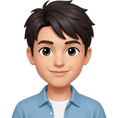 Cute guy with brown hair and brown eyes and dark five o clock shadow smiling, hair parted to the right side emoji