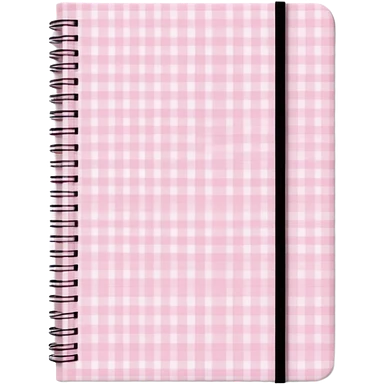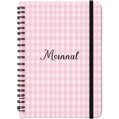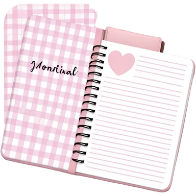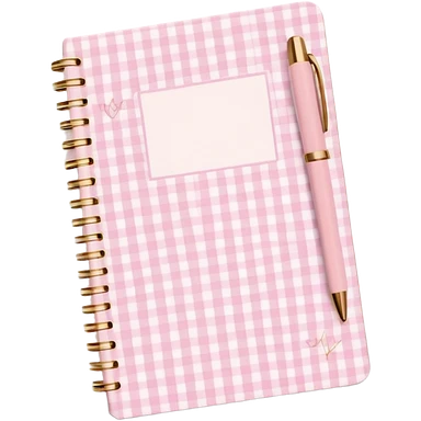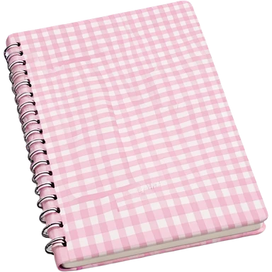 Cute journal cover, pastel pink gingham pattern Handwritten feminine typography, soft aesthetic, cozy girl vibe Clean product mockup, minimal shadows, lifestyle stationery style emoji