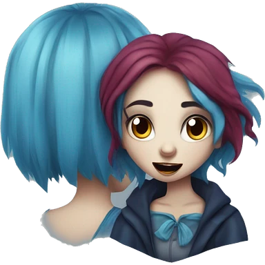 cute blue haired girl with vampire fangs daydreaming about a leopard and drooling emoji