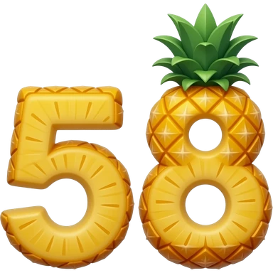 "numbers 58 pineapple style, 3D glossy, colorful, white background emoji