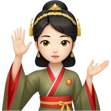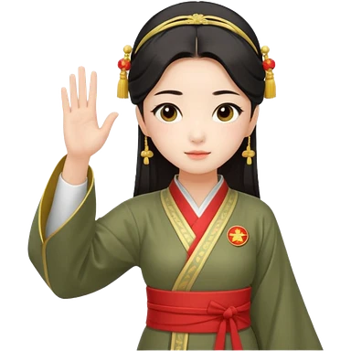 cute and sexy chinese girl in hanfu, paying respect by "salute" gesture as in army, using right hand emoji