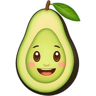 Cute avocado sticker with a smiling face on the seed, cartoon style with bright greens emoji