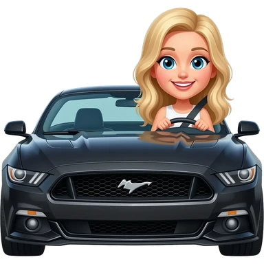 Cute blonde woman driving a black Mustang emoji