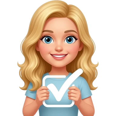 Cute blonde woman holding a white tick emoji