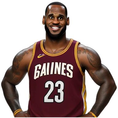 Make LeBron James wearing a kings crown and dunking a basketball into a basketball hoop with fire and smoke below him emoji