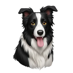 Cinematic Cute Border Collie Portrait Emoji, Head tilted playfully and inquisitively, with a sleek black and white coat and bright, sparkling blue eyes filled with curiosity, Simplified yet irresistibly adorable features, highly detailed, glowing with a warm, friendly glow, high shine, energetic and affectionate, stylized with a touch of whimsy, bright and endearing, soft glowing outline, capturing the essence of a mischievous yet loving pup, so playful it feels like it could bound out of the screen and into your arms! emoji