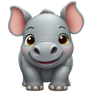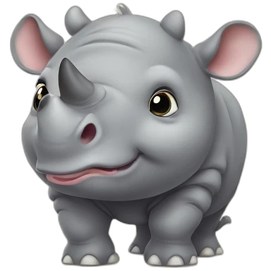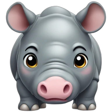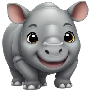 Cinematic Cute Rhinoceros Portrait Emoji, Head tilted playfully and inquisitively, featuring a rugged, glossy slate-gray hide with a gentle, rounded horn and round, sparkling eyes filled with curious wonder, Simplified yet irresistibly adorable features, highly detailed, glowing with a warm, friendly glow, high shine, affectionate and mighty, stylized with a touch of ancient charm, bright and endearing, soft glowing outline, capturing the essence of a mischievous yet loving rhinoceros, so playful it feels like it could stomp out of the screen and into your arms! emoji