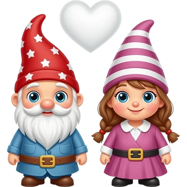 Cute Male and female gnomes with a white love heart above them emoji | AI Emoji Generator