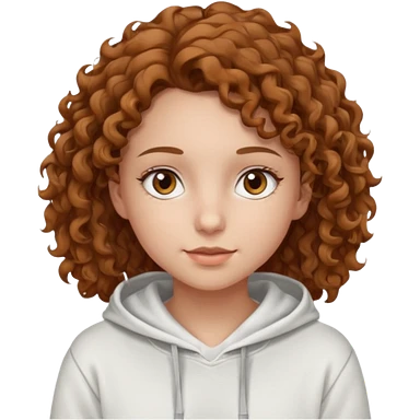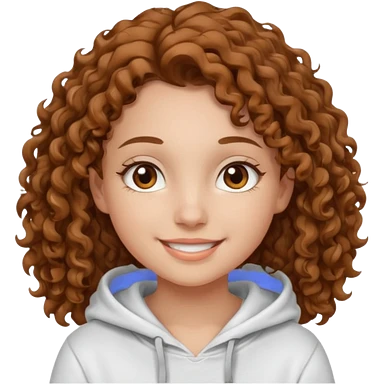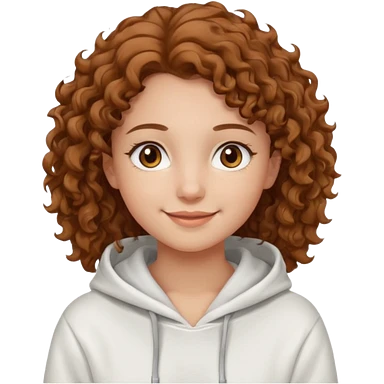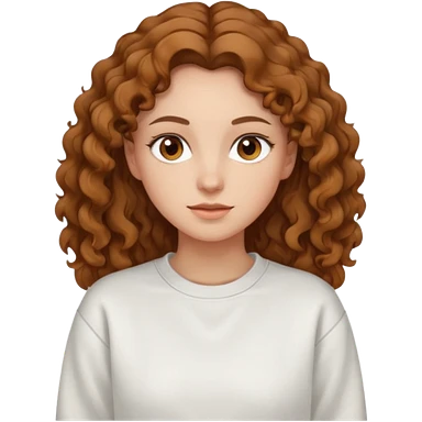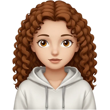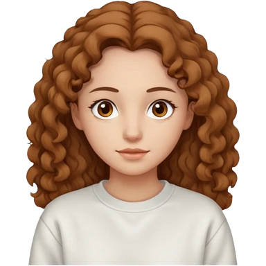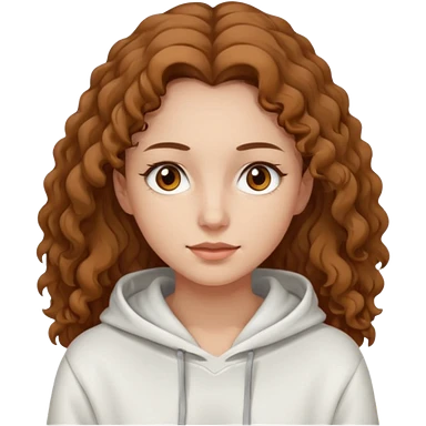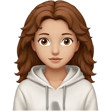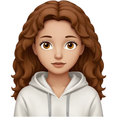 Una ragazza con una felpa semplice bianca,ha gli occhi marroni,i capelli marroni , c’è gli ha lunghi e ricci e ha le ciglia lo stile dell immagine deve essere semplice emoji