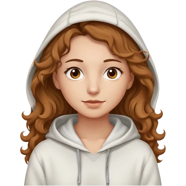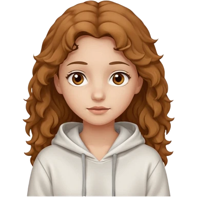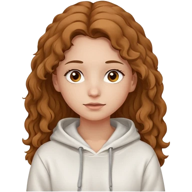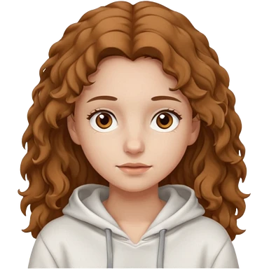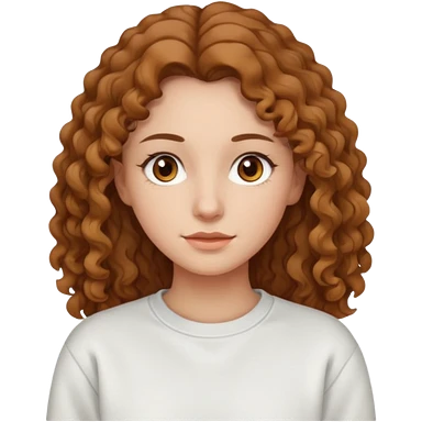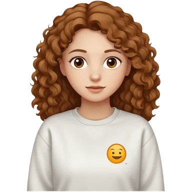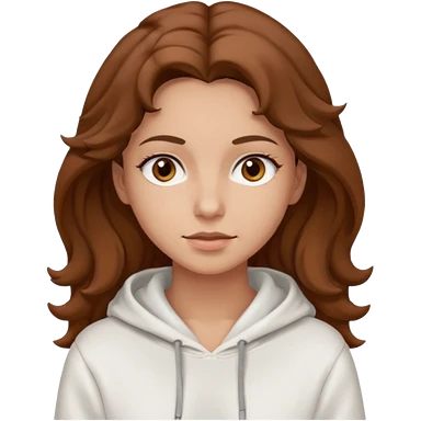 Una ragazza con una felpa semplice bianca,ha gli occhi marroni,i capelli marroni chiaro , c’è gli ha lunghi e ricci ma non troppo emoji