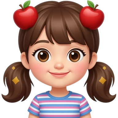 Make a Korean girl with cute pigtails and brown hair with apple emoji features emoji