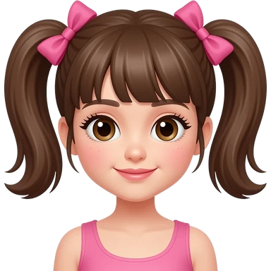 cute girl with brown short pigtails and pink bow emoji