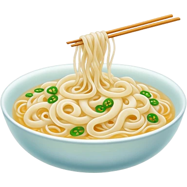 cute powder pink/white tone bowl with ramen noodles and chop sticks emoji