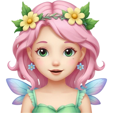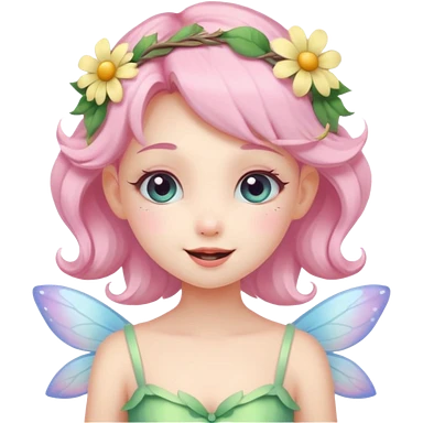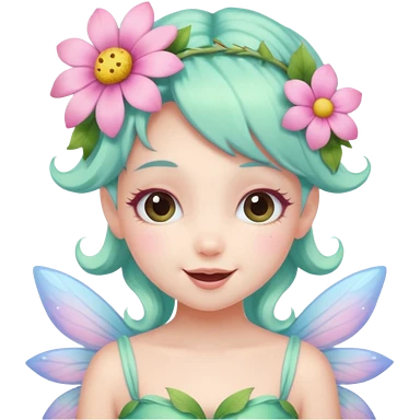 cute pastel fairy girl flower head decoration wink emoji | AI Emoji Generator