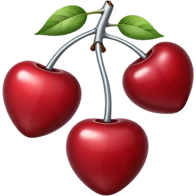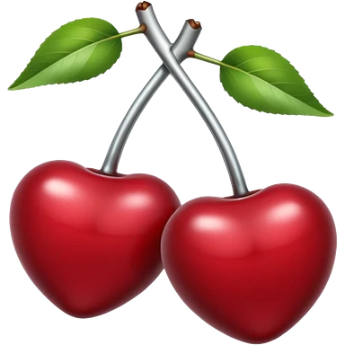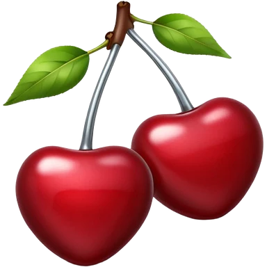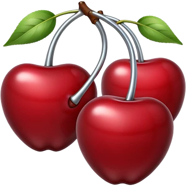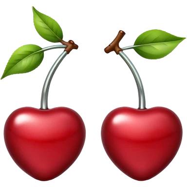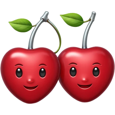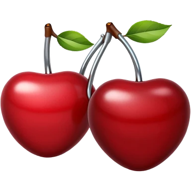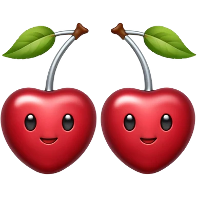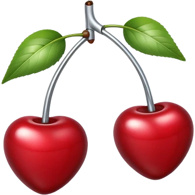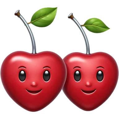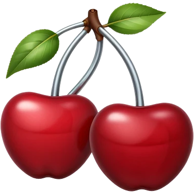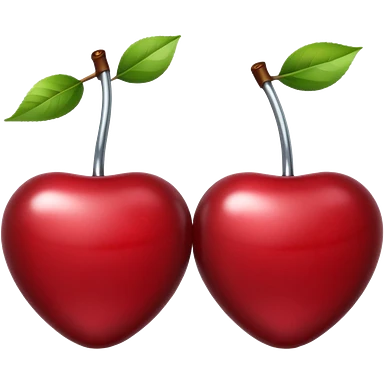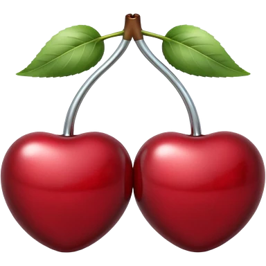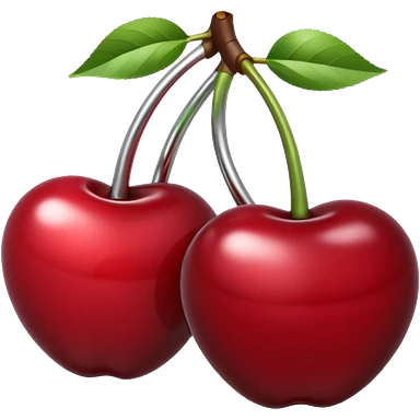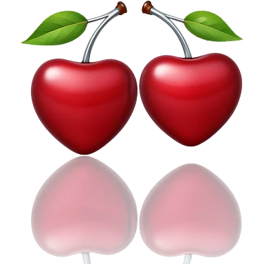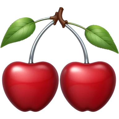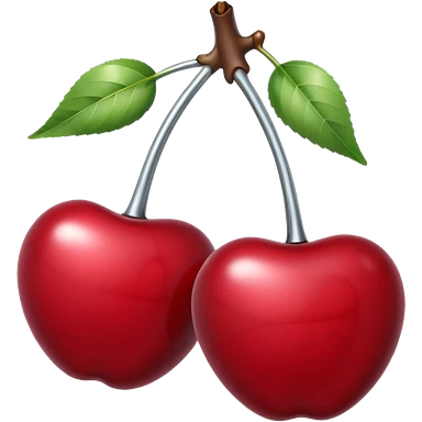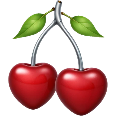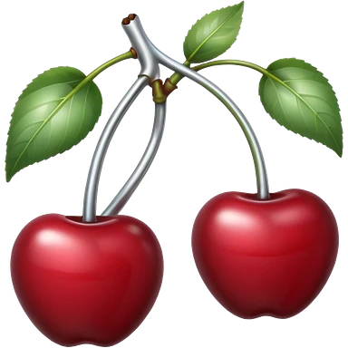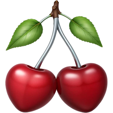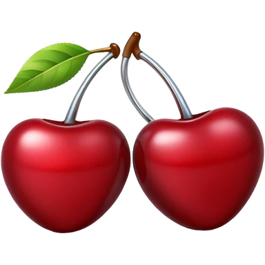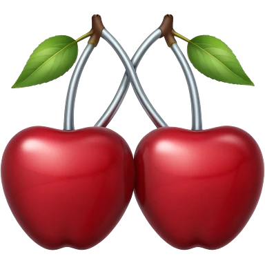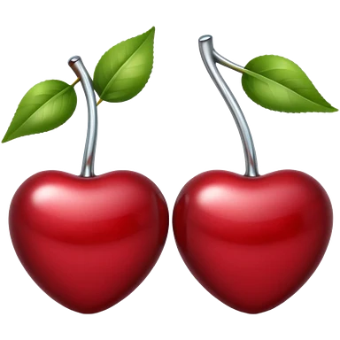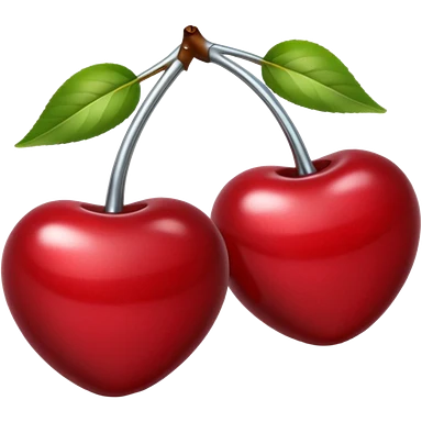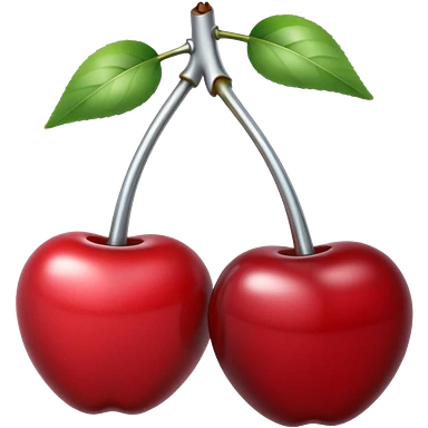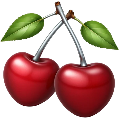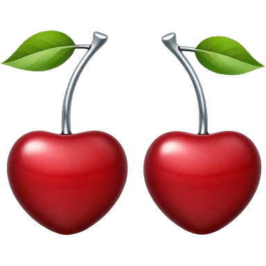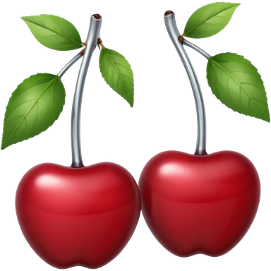 A pair of cherries emoji made of polished silver chrome, smooth rounded shapes, glossy metallic finish, soft highlights and reflections, cute proportions, iOS emoji style, centered, clean white background, no text emoji