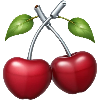 Girl holding cherry vine in between teeth with pink cherries at the end emoji
