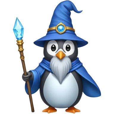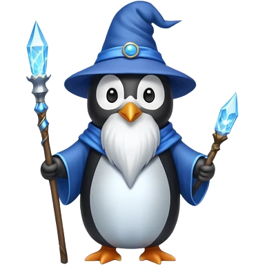 cute penguin wizard with a magical staff and a pointy hat emoji