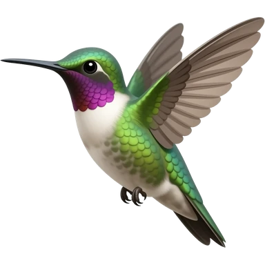 Flying dark purple coloured hummingbird with pink and white accents emoji