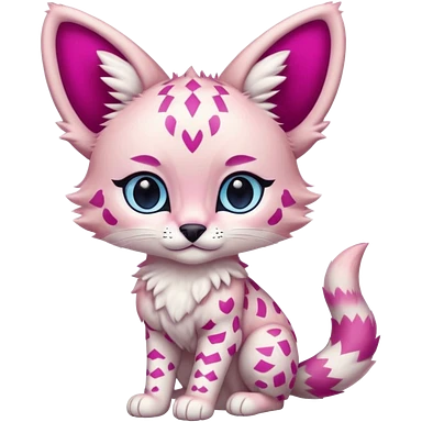 Whitish pastel-rosy-pink chibi cute elegant furry kawaii Serval, with magenta intricate chevron markings, and with big blue eyes, emoji