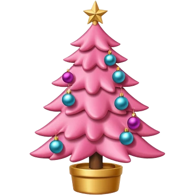 Cute pink Christmas tree with delicate ornaments, lights, and a sparkling star on top emoji