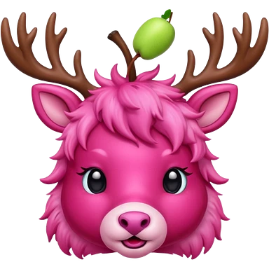 cute pink deer with apple on head emoji | AI Emoji Generator