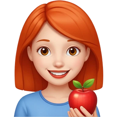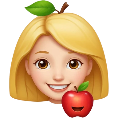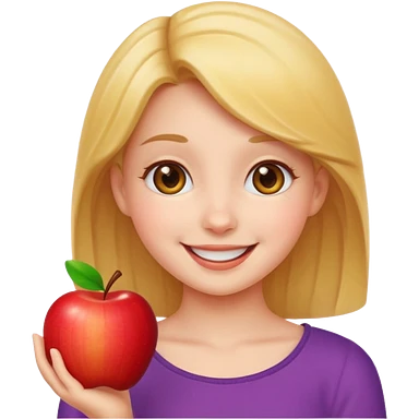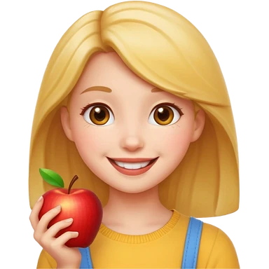 cheerful pose cute girl apple emoji style. don't hold an apple emoji