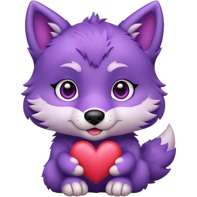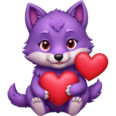 Cute purple wolf pup with heart emoji | AI Emoji Generator