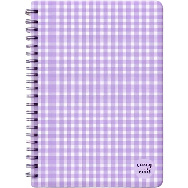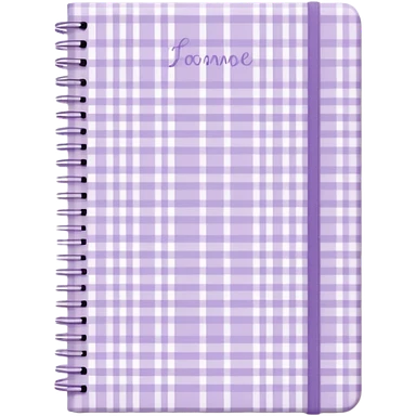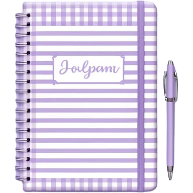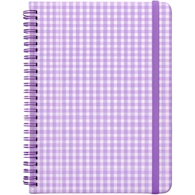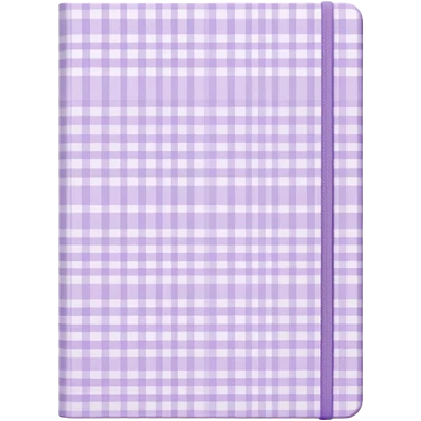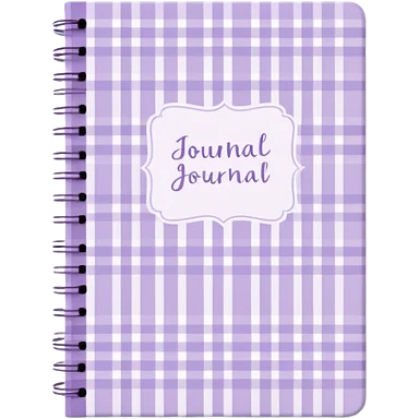 Cute journal cover, pastel purple gingham pattern Handwritten feminine typography, soft aesthetic, cozy girl vibe Clean product mockup, minimal shadows, lifestyle stationery style emoji
