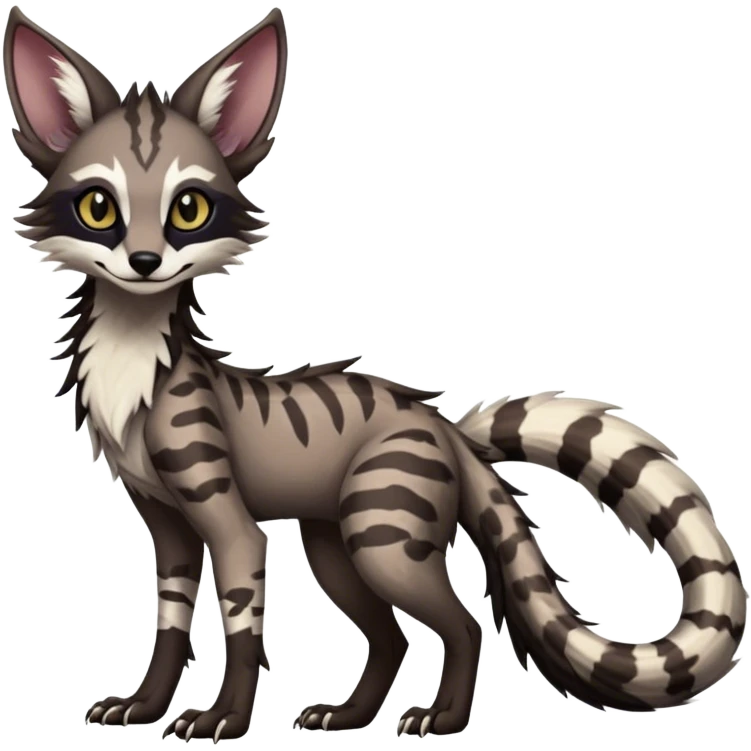Cute Realistic Feral Rare Fantasy dark Vernid-Sergal-Genet-Trico-species by LiLaiRa, random markings, tufted tail, tufted ears, full body emoji | AI Emoji Generator