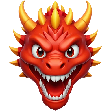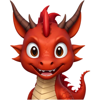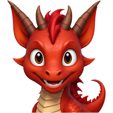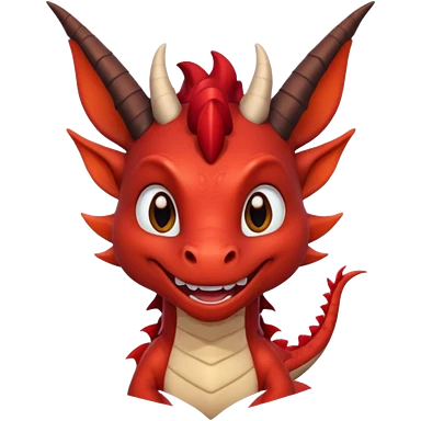 Cute Red dragon smile. dark horns, pointed ears. Brown mane hair. Head only, Headshot emoji | AI Emoji Generator