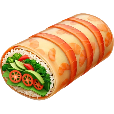 Cute Kawaii Maki Sushi Roll, small and round, wrapped in soft dark green seaweed, tiny grains of rice peeking out, a bright pink fish filling, a cheerful smiling face! emoji