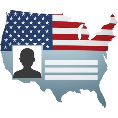 ID card with placeholder lines instead of text, small silhouette of USA in the corner, classic emoji style emoji