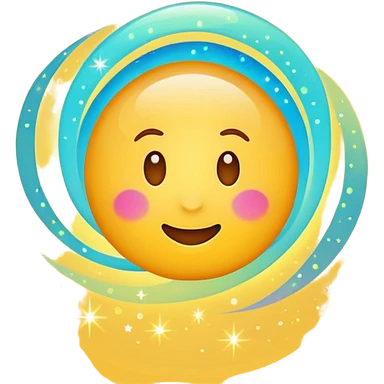 cute round emoji, simple flat vector style, minimal details, glowing aura effect, colorful sparkles and light trail swirling around, transformation effect, magical appearance, high quality, white background emoji | AI Emoji Generator