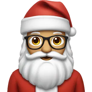 cute fluffy white kitten with a gold bell and a cute red santa hat emoji