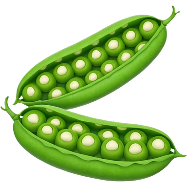 A green pea pod with several round peas visible inside, slightly open to reveal the peas emoji