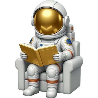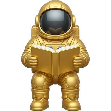 A seated golden astronaut reading a golden book emoji