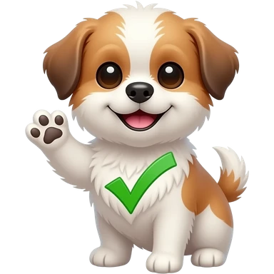 cute shih tzu smiling with one paw up and check mark on the body emoji
