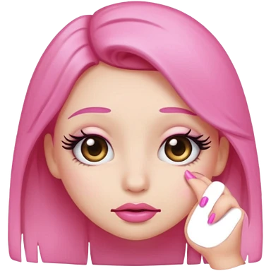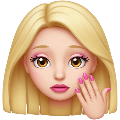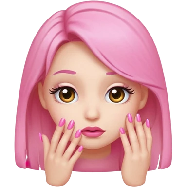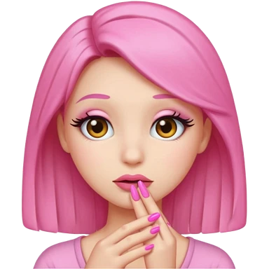 Shy emoji with long lashes, pouty lips, and pink nails on a black background, cute aesthetic emoji