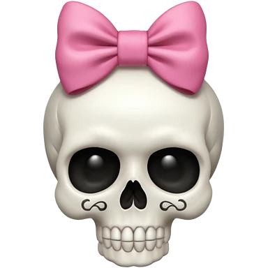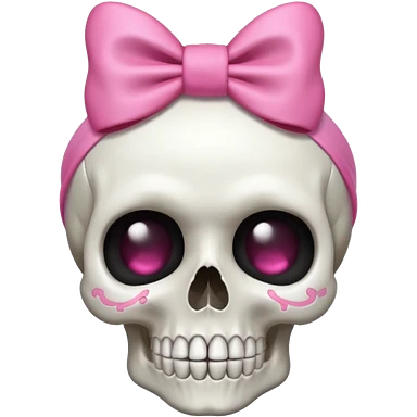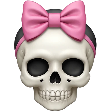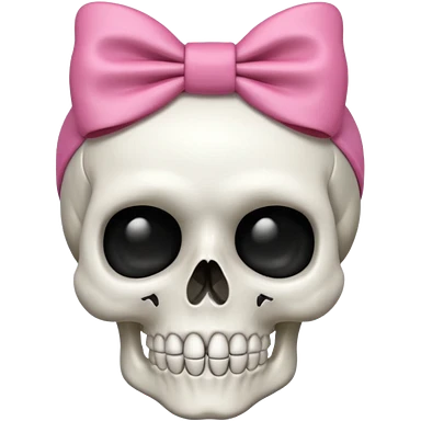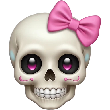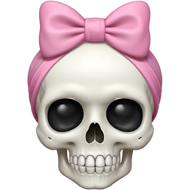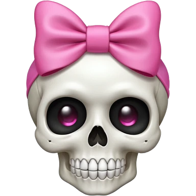 super cute skull with rounder shape, tiny bow on top, big eyes with stars, pastel pink and white colors emoji