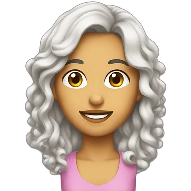 Uma menina com o cabelo cacheado é morena, e com uma regata rosa emoji