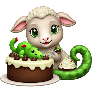 Lamb eating dessert with a cute green snake emoji